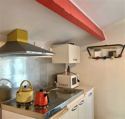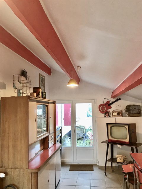 Un bel espace de 42m2 comprenant une chambre de 20M2 donnant directement sur le jardin- lit double – Petite salle de bains privative très fonctionnelle avec grande douche de 1,20m/80 – Wc privatifs indépendants de la salle de bains et de la chambre – Cuisine « ambiance Vintage années 60′ jouxtant la chambre comportant tout l’équipement nécessaire à la confection de repas si on le souhaite et si on est là pour plusieurs jours –